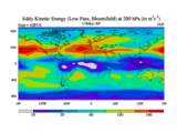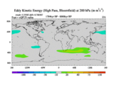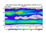 Low Pass Eddy Kinetic Energy at 200 hPa