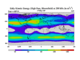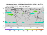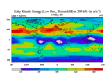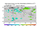Low Pass Eddy Kinetic Energy at 200 hPa