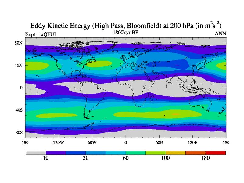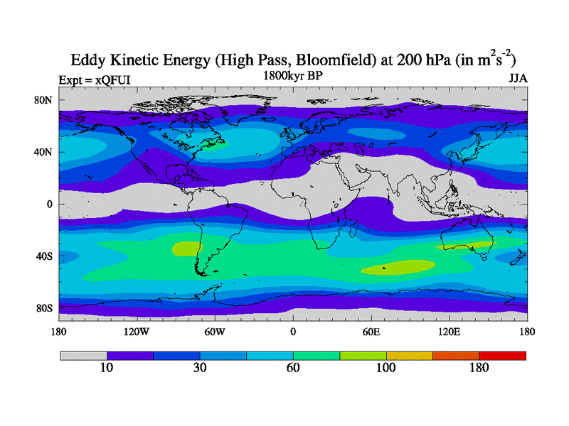 High Pass Eddy Kinetic Energy at 200 hPa