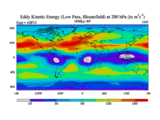 Low Pass Eddy Kinetic Energy at 200 hPa