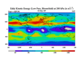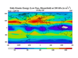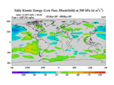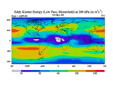 Low Pass Eddy Kinetic Energy at 200 hPa