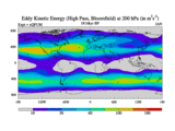 High Pass Eddy Kinetic Energy at 200 hPa