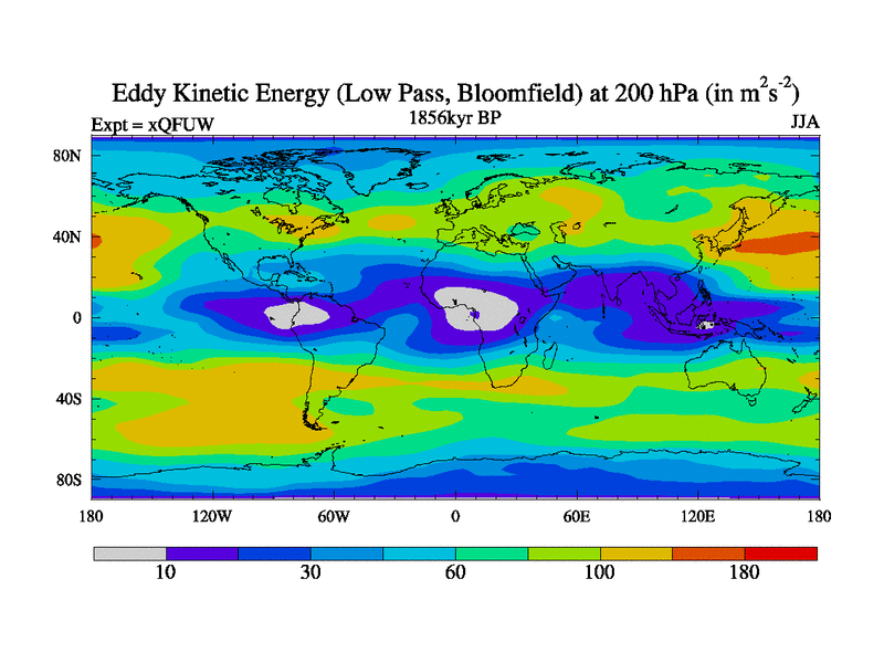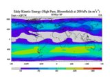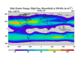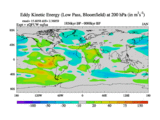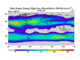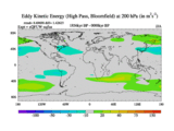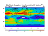 Low Pass Eddy Kinetic Energy at 200 hPa