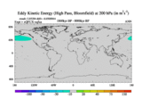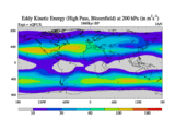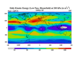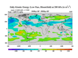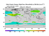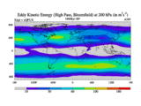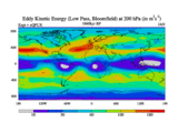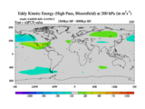 Low Pass Eddy Kinetic Energy at 200 hPa