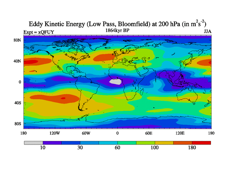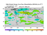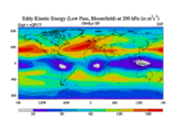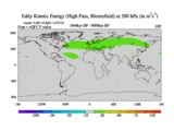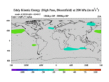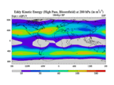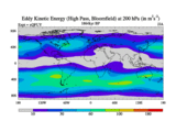 Low Pass Eddy Kinetic Energy at 200 hPa