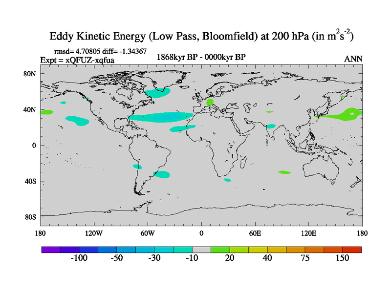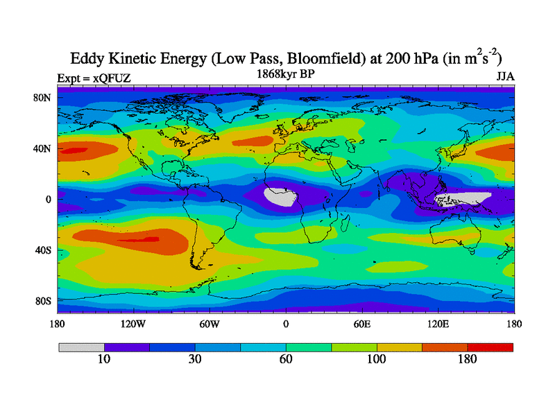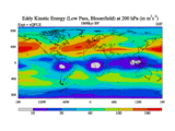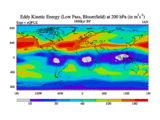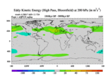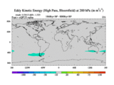 Low Pass Eddy Kinetic Energy at 200 hPa