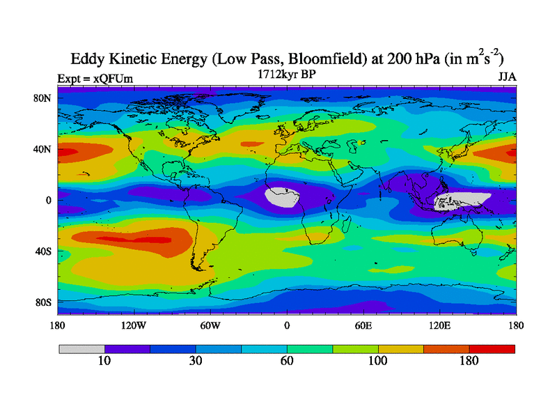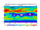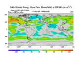 Low Pass Eddy Kinetic Energy at 200 hPa