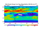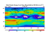 Low Pass Eddy Kinetic Energy at 200 hPa
