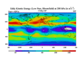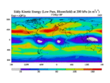 Low Pass Eddy Kinetic Energy at 200 hPa