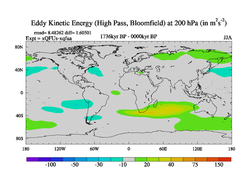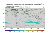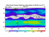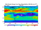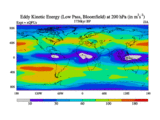 Low Pass Eddy Kinetic Energy at 200 hPa