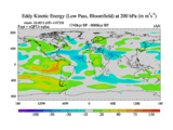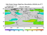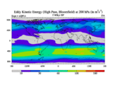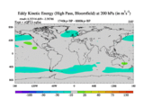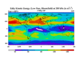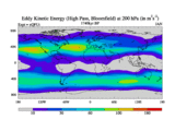 Low Pass Eddy Kinetic Energy at 200 hPa