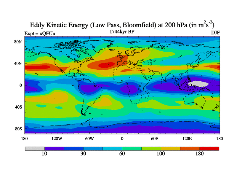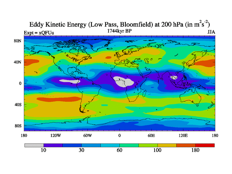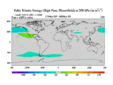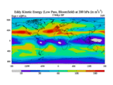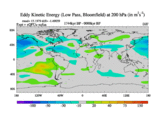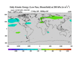 Low Pass Eddy Kinetic Energy at 200 hPa