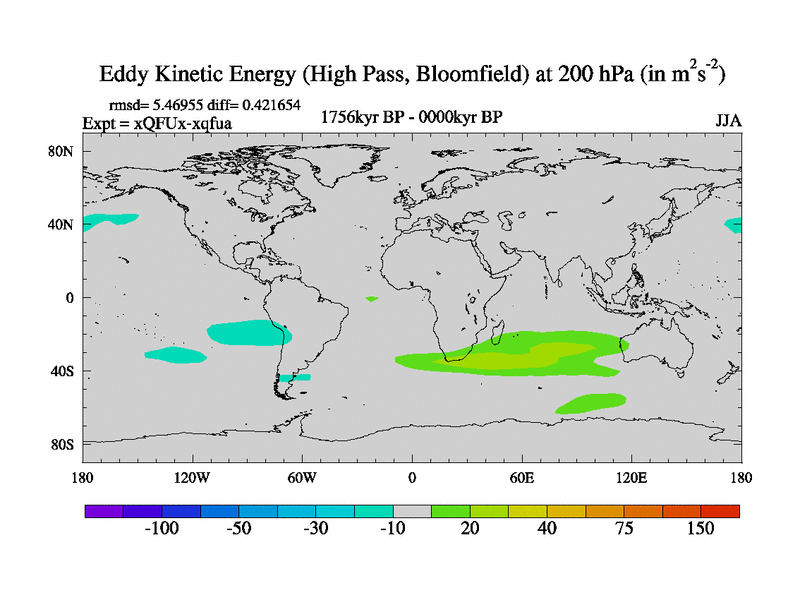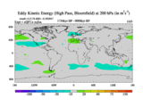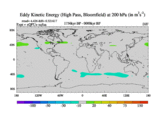 Low Pass Eddy Kinetic Energy at 200 hPa