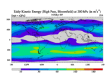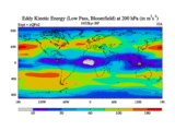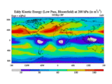 Low Pass Eddy Kinetic Energy at 200 hPa