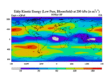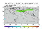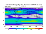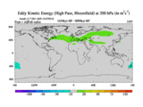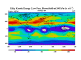 Low Pass Eddy Kinetic Energy at 200 hPa