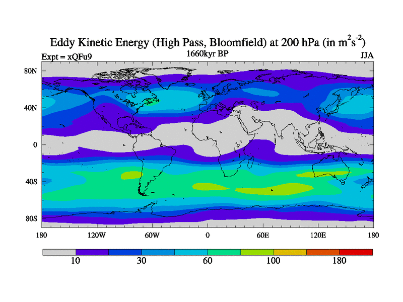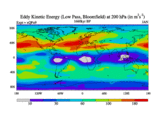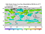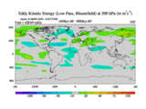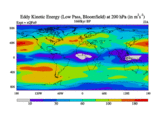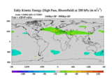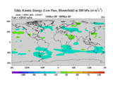 Low Pass Eddy Kinetic Energy at 200 hPa