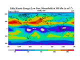 Low Pass Eddy Kinetic Energy at 200 hPa