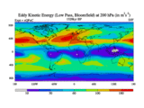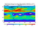Low Pass Eddy Kinetic Energy at 200 hPa