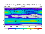 High Pass Eddy Kinetic Energy at 200 hPa