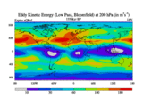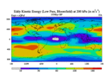 Low Pass Eddy Kinetic Energy at 200 hPa