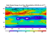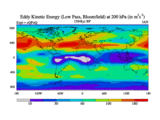 Low Pass Eddy Kinetic Energy at 200 hPa