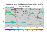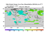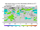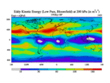 Low Pass Eddy Kinetic Energy at 200 hPa