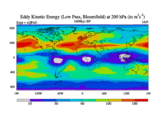 Low Pass Eddy Kinetic Energy at 200 hPa