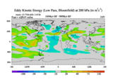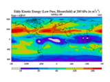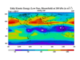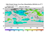 Low Pass Eddy Kinetic Energy at 200 hPa