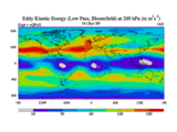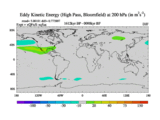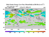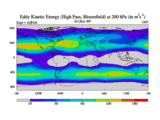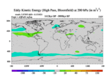 Low Pass Eddy Kinetic Energy at 200 hPa