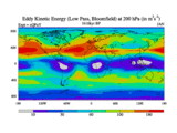 Low Pass Eddy Kinetic Energy at 200 hPa