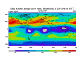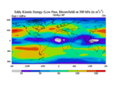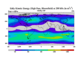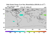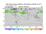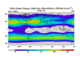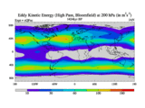 Low Pass Eddy Kinetic Energy at 200 hPa