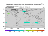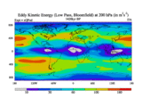 Low Pass Eddy Kinetic Energy at 200 hPa