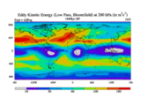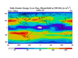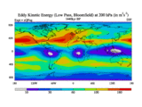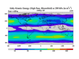 Low Pass Eddy Kinetic Energy at 200 hPa