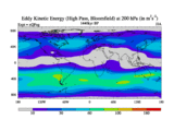 High Pass Eddy Kinetic Energy at 200 hPa
