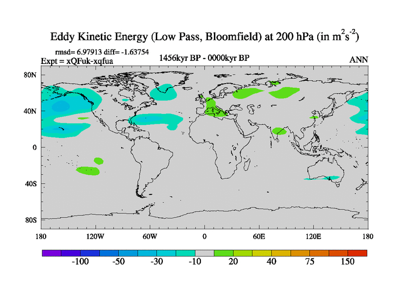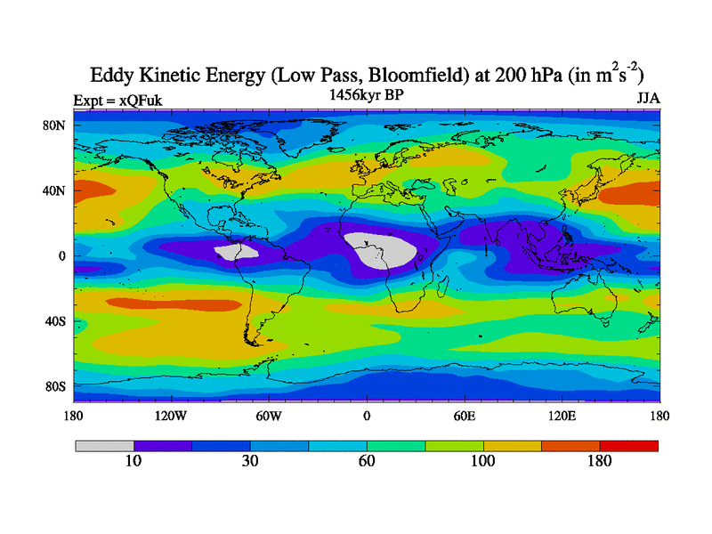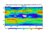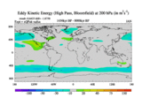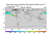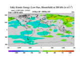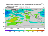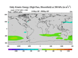 Low Pass Eddy Kinetic Energy at 200 hPa