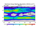 High Pass Eddy Kinetic Energy at 200 hPa