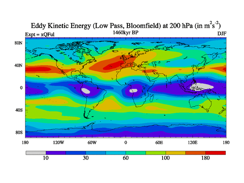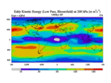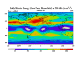 Low Pass Eddy Kinetic Energy at 200 hPa