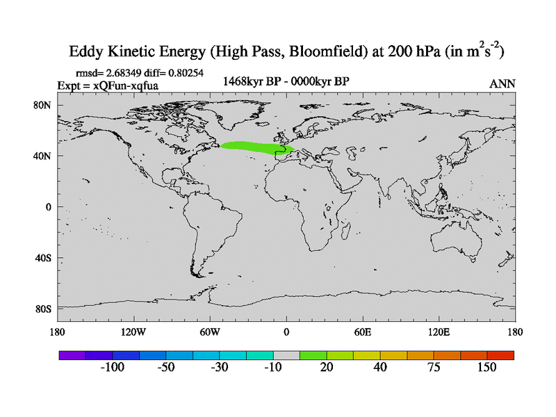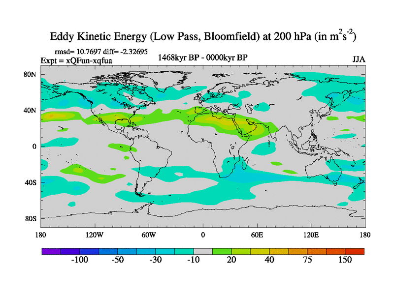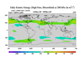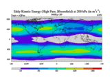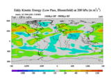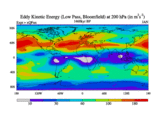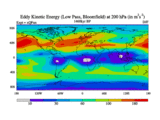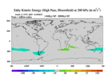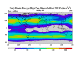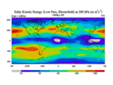 Low Pass Eddy Kinetic Energy at 200 hPa