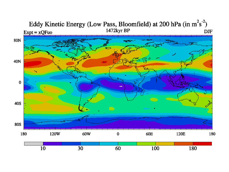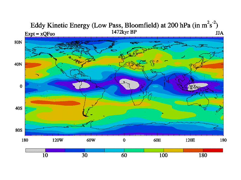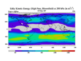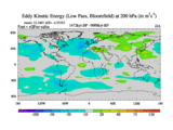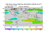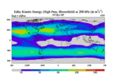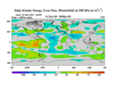 Low Pass Eddy Kinetic Energy at 200 hPa
