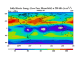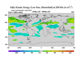 Low Pass Eddy Kinetic Energy at 200 hPa