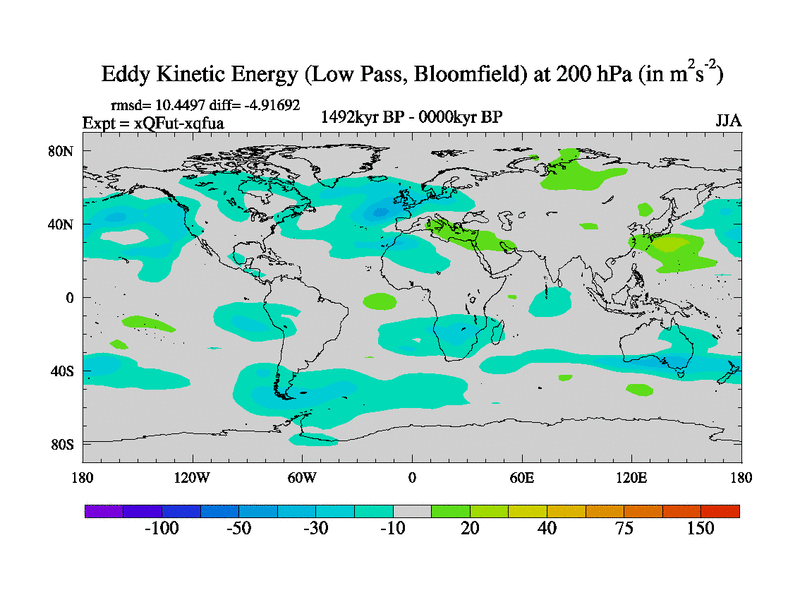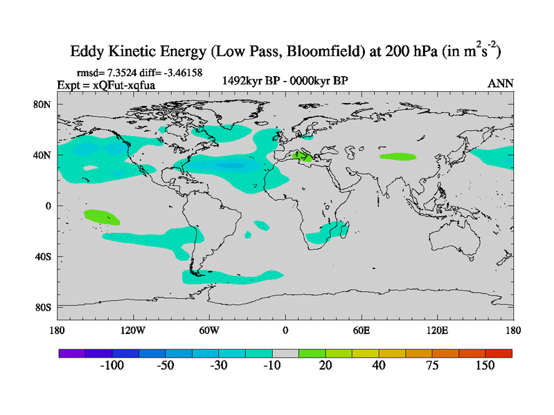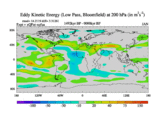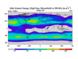 Low Pass Eddy Kinetic Energy at 200 hPa