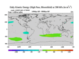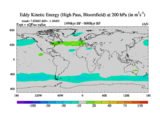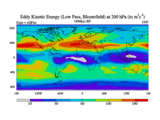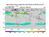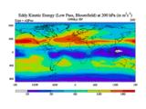 Low Pass Eddy Kinetic Energy at 200 hPa