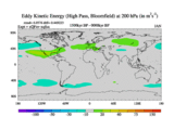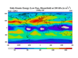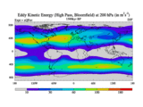 Low Pass Eddy Kinetic Energy at 200 hPa