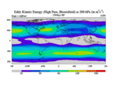 High Pass Eddy Kinetic Energy at 200 hPa