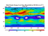 Low Pass Eddy Kinetic Energy at 200 hPa
