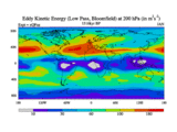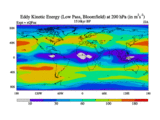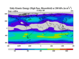 Low Pass Eddy Kinetic Energy at 200 hPa