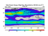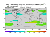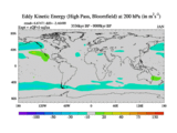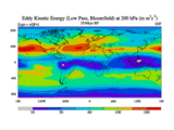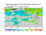 Low Pass Eddy Kinetic Energy at 200 hPa