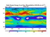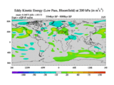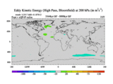 Low Pass Eddy Kinetic Energy at 200 hPa