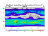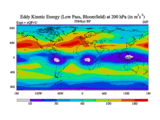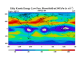 Low Pass Eddy Kinetic Energy at 200 hPa