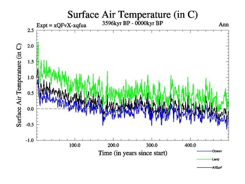 This is the 3596kyr simulation for a new set of BBC long runs. This is using the new convection/soil schemes, and has bug fixes for checkerboard patterns, and GW drag. Also includes eccentricity bugfix. This run includes orbit and icesheet but no GHGs variations.